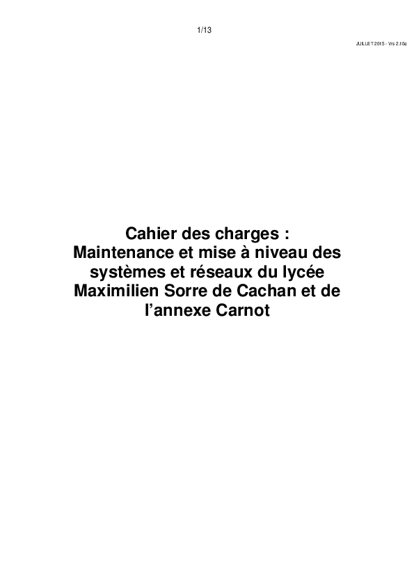 Marché : PAJI/15/05175 Maintenance et mise à niveau des systèmes et réseaux du lycée Maximilien Sorre de Cachan et de l’annexe Carnot