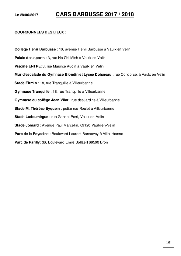 TRANSPORTER LES ÉLEVES PENDANT L’ANNÉE SCOLAIRE 2017/2018 SUR LES SITES DE COURS D'EPS.